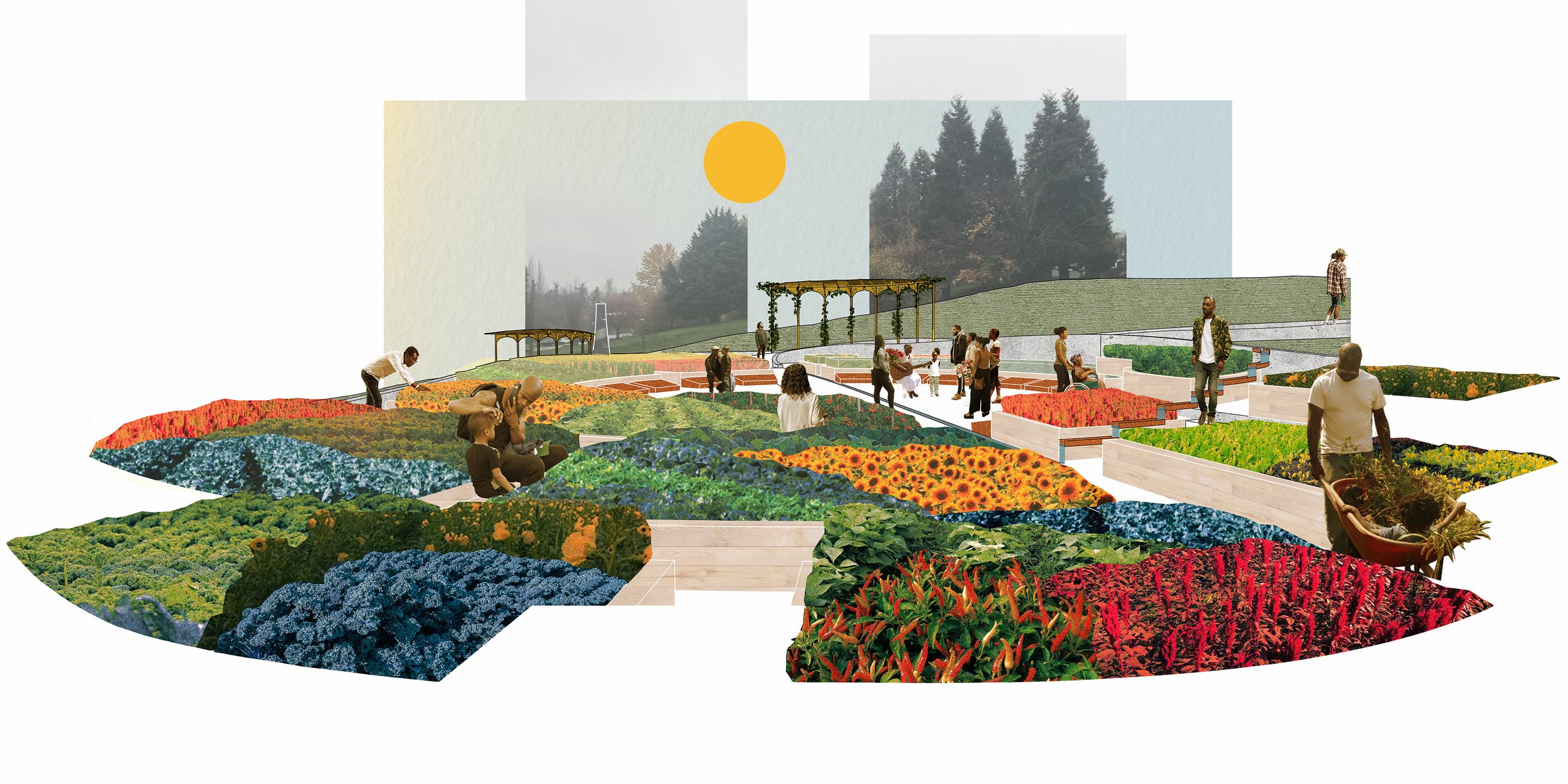 The garden was designed in close collaboration with Colloqate Design and the stakeholders who have led this project since the beginning: Clean Greens Farm & Market, Solace, the Black Agricultural Leadership Council, and the NAACP. Special thanks to the young people in the Clean Greens Youth Program for contributing their vision and creativity to the design. DCW provided cost estimates.